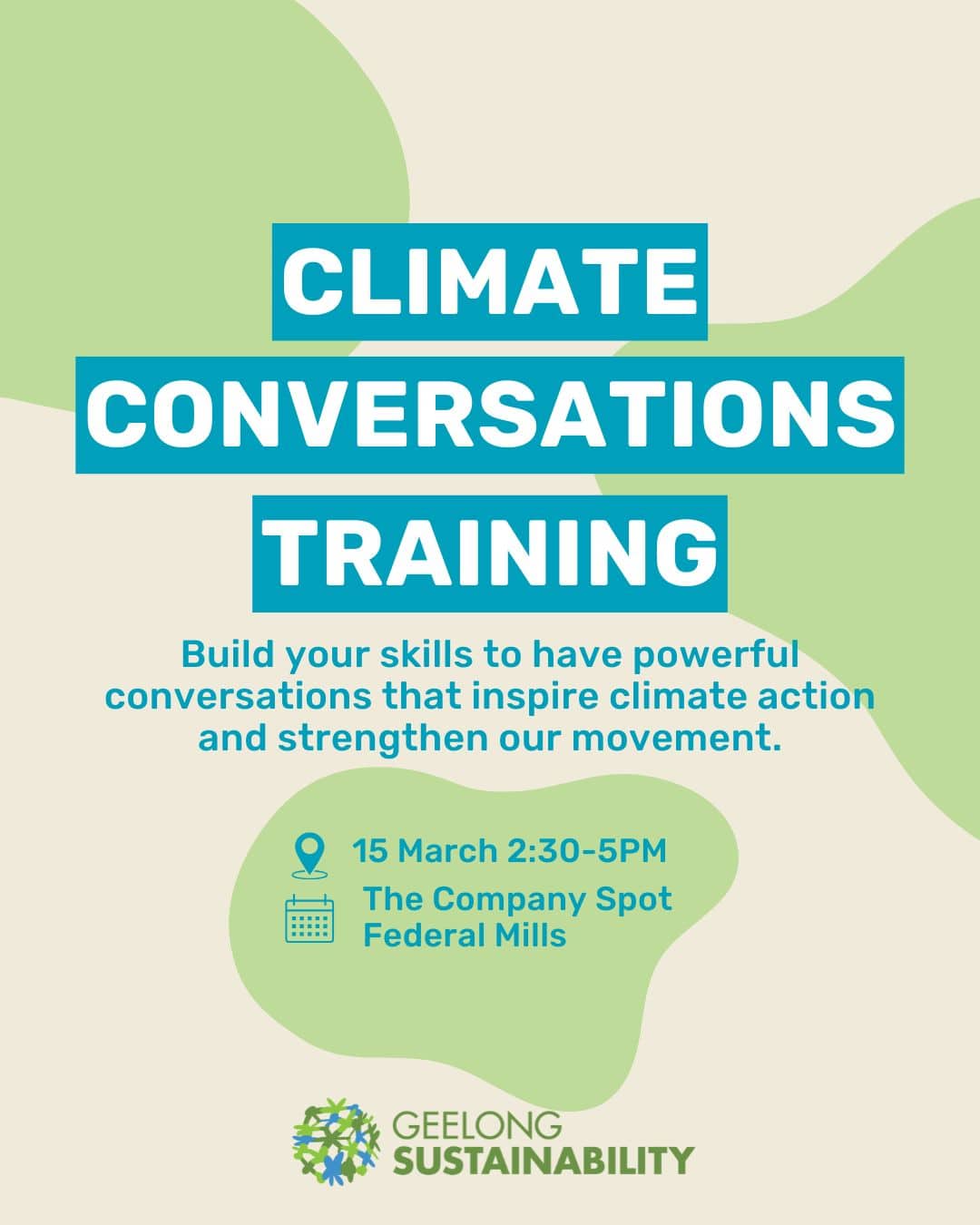That’s why we’re excited to bring Climate for Change, a volunteer-powered not-for-profit, to Geelong to run a special climate conversations training. This expert-led, two-hour workshop will equip you with the skills and confidence to have meaningful and persuasive conversations about climate change—conversations that inspire action and help build the movement we need to shape the outcome of this election. This is why we are bringing Effective Conversations to our community!Â